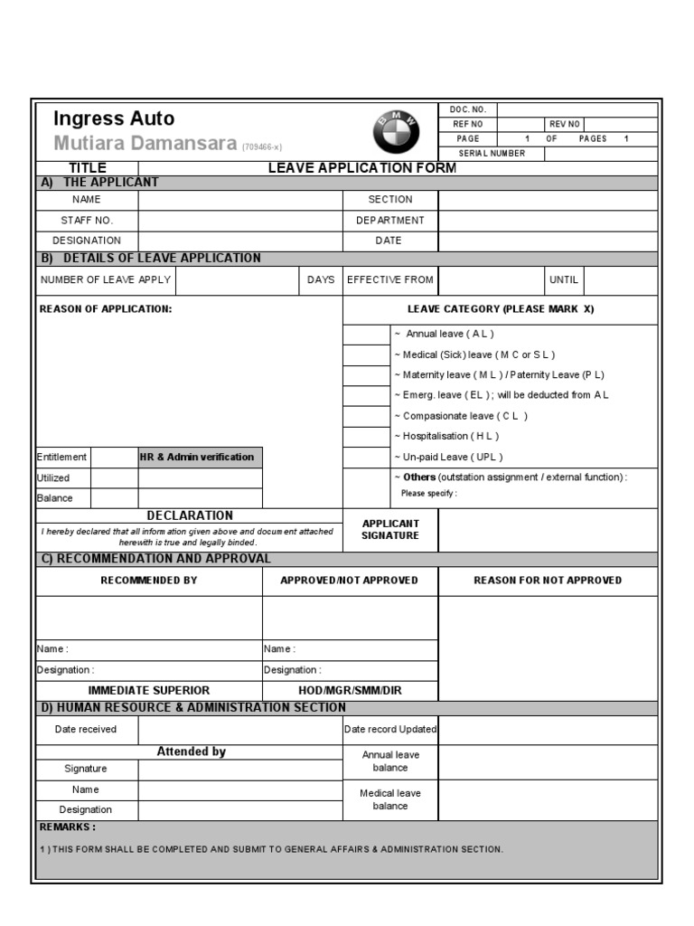 Revised Leave Application Form from imgv2-2-f.scribdassets.com Medicine student conference leave application form. Paid parental leave application form. Target audience for leave application form. With regards to office forms, they are also different. Authority can reject or accept full days or. Collection of most popular forms in a given sphere. Below are some of the things that never. We have many more template about leave application form sample including template, printable, photos.