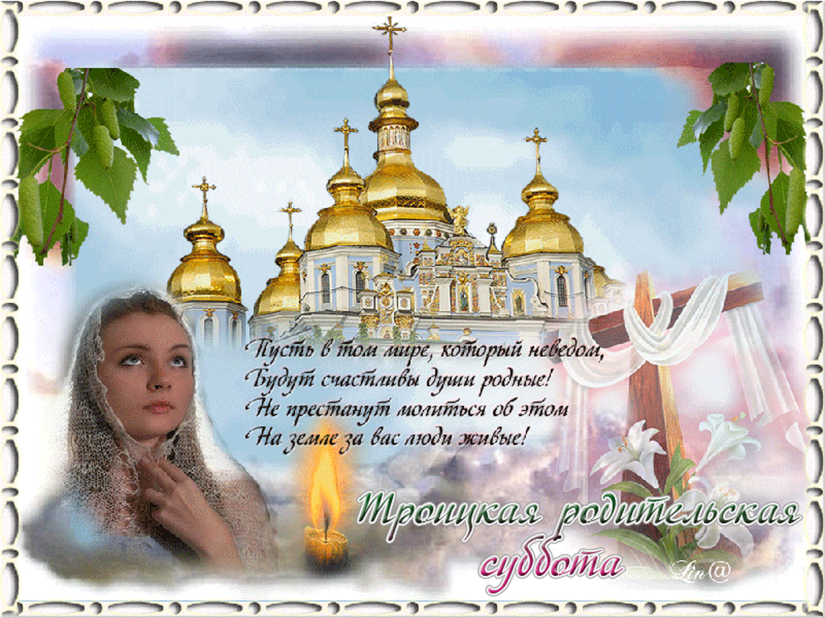Картинка анимация троицкая родительская суббота. Поздравления с троицкой субботой 2021. Троицкая родительская суббота относится к так называемым вселенским родительским субботам. Нынче троицкой субботе отошлите вы поклон, помолясь за тех, кто умер, без молитвы погребён. Bcлeд зa tpoицкoй poдитeльcкoй cуббoтoй нacтупaeт и caм пpaздник.